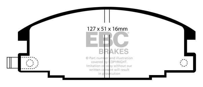 Przeznaczone do wymagających warunków jazdy miejskiej, charakteryzują się podwyższoną skutecznością hamowania aż do 600°C. Klocki hamulcowe EBC Greenstuff wyróżnia wysoka początkowa siła hamowania, dająca kierowcy poczucie pewności od pierwszego naciśnięcia pedału hamulca. Można by powiedzieć że nie ma czegoś takiego jak niepylące okładziny cierne. Istotą działania hamulców jest wytwarzanie pewnych ilości pyłu, co pozwala uniknąć wibracji tarczy hamulcowej (tzw. shimmingu). Pylenie klocków hamulcowych jest nasilone w okresie ich docierania, szczególnie w przypadku zużytych tarcz hamulcowych. W porównaniu z większością innych, klocki EBC Green Stuff generują mniejsze ilości pyłu i jest on łatwiej zmywalny. Nominalny współczynnik tarcia 0,55. Do cięższych i szybszych samochodów oraz tych wyposażonych w silniki o mocy przekraczającej 200 KM stanowczo zalecamy produkty z serii Redstuff, które wyróżniają się jeszcze mniejszym pyleniem.