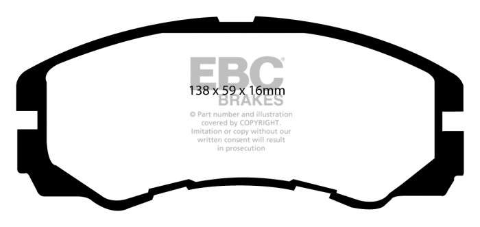 Przeznaczone do wymagających warunków jazdy miejskiej, charakteryzują się podwyższoną skutecznością hamowania aż do 600°C. Klocki hamulcowe EBC Greenstuff wyróżnia wysoka początkowa siła hamowania, dająca kierowcy poczucie pewności od pierwszego naciśnięcia pedału hamulca. Można by powiedzieć że nie ma czegoś takiego jak niepylące okładziny cierne. Istotą działania hamulców jest wytwarzanie pewnych ilości pyłu, co pozwala uniknąć wibracji tarczy hamulcowej (tzw. shimmingu). Pylenie klocków hamulcowych jest nasilone w okresie ich docierania, szczególnie w przypadku zużytych tarcz hamulcowych. W porównaniu z większością innych, klocki EBC Green Stuff generują mniejsze ilości pyłu i jest on łatwiej zmywalny. Nominalny współczynnik tarcia 0,55. Do cięższych i szybszych samochodów oraz tych wyposażonych w silniki o mocy przekraczającej 200 KM stanowczo zalecamy produkty z serii Redstuff, które wyróżniają się jeszcze mniejszym pyleniem.