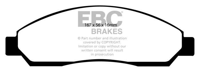 Nie pozwól, aby niższa cena zamiennika przesłoniła Ci ten doskonałej jakości produkt, który zatrzyma Twój samochód równie sprawnie, jak klocki oryginalne, a przy tym szybciej niż większość innych dostępnych na rynku. Wspaniałą zaletą klocków EBC jest ich zdolność do całkowitej eliminacji szarpania przy hamowaniu – po 450-600 km przebiegu praktycznie KOMPENSUJĄ szarpnięcia o umiarkowanym natężeniu. Nominalny współczynnik tarcia 0,46, przy minimalnym ścieraniu tarcz hamulcowych oraz pyleniu na poziomie części oryginalnych.