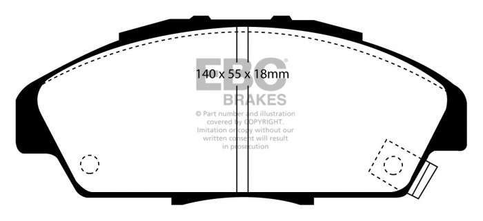 Czarne klocki EBC wykonane są z najwyższej jakości materiałów ciernych, spełniających wymogi norm bezpieczeństwa hamulców ECE R90 i jako takie stanowią doskonały zamiennik klocków montowanych fabrycznie – a przy tym za znacznie mniejsze pieniądze. Produkowane z podkładkami antywibracyjnymi, ukośnymi ścięciami, szczeliną dylatacyjną oraz unikalną powłoką BRAKE-IN, zapewniają niezwykle krótki czas docierania (w Europie tylko określone warianty mają podkładki).