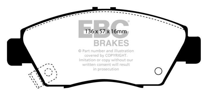 Przeznaczone do wymagających warunków jazdy miejskiej, charakteryzują się podwyższoną skutecznością hamowania aż do 600°C. Klocki hamulcowe EBC Greenstuff wyróżnia wysoka początkowa siła hamowania, dająca kierowcy poczucie pewności od pierwszego naciśnięcia pedału hamulca. Można by powiedzieć że nie ma czegoś takiego jak niepylące okładziny cierne. Istotą działania hamulców jest wytwarzanie pewnych ilości pyłu, co pozwala uniknąć wibracji tarczy hamulcowej (tzw. shimmingu). Pylenie klocków hamulcowych jest nasilone w okresie ich docierania, szczególnie w przypadku zużytych tarcz hamulcowych. W porównaniu z większością innych, klocki EBC Green Stuff generują mniejsze ilości pyłu i jest on łatwiej zmywalny. Nominalny współczynnik tarcia 0,55. Do cięższych i szybszych samochodów oraz tych wyposażonych w silniki o mocy przekraczającej 200 KM stanowczo zalecamy produkty z serii Redstuff, które wyróżniają się jeszcze mniejszym pyleniem.
