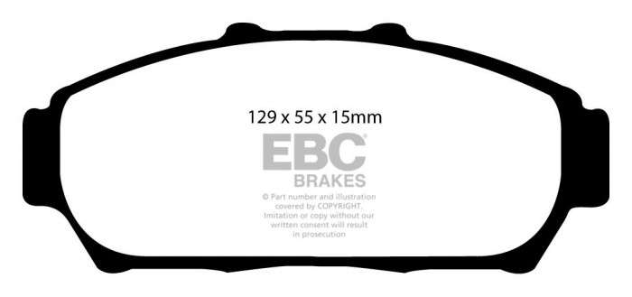 Okładziny wykonane są z kompozytu ciernego na bazie włókien z tworzywa Kevlar® wzmacnianego spiekami ceramicznymi. W porównaniu do wcześniejszej generacji klocków EBC Redstuff (z okładzinami ciernymi nieceramicznymi) ten materiał jest o lata świetlne do przodu. Jest trwalszy, lepiej hamuje i jest cichszy. Klocki te zapewniają imponującą skuteczność przy częstym intensywnym hamowaniu.