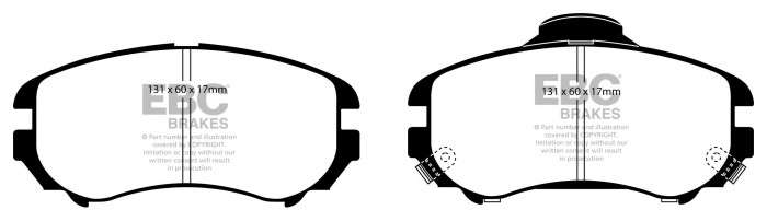 Nie pozwól, aby niższa cena zamiennika przesłoniła Ci ten doskonałej jakości produkt, który zatrzyma Twój samochód równie sprawnie, jak klocki oryginalne, a przy tym szybciej niż większość innych dostępnych na rynku. Wspaniałą zaletą klocków EBC jest ich zdolność do całkowitej eliminacji szarpania przy hamowaniu – po 450-600 km przebiegu praktycznie KOMPENSUJĄ szarpnięcia o umiarkowanym natężeniu. Nominalny współczynnik tarcia 0,46, przy minimalnym ścieraniu tarcz hamulcowych oraz pyleniu na poziomie części oryginalnych.
