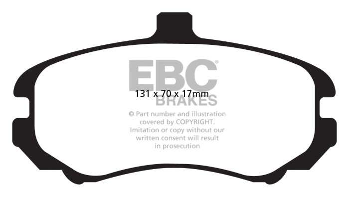 Przeznaczone do wymagających warunków jazdy miejskiej, charakteryzują się podwyższoną skutecznością hamowania aż do 600°C. Klocki hamulcowe EBC Greenstuff wyróżnia wysoka początkowa siła hamowania, dająca kierowcy poczucie pewności od pierwszego naciśnięcia pedału hamulca. Można by powiedzieć że nie ma czegoś takiego jak niepylące okładziny cierne. Istotą działania hamulców jest wytwarzanie pewnych ilości pyłu, co pozwala uniknąć wibracji tarczy hamulcowej (tzw. shimmingu). Pylenie klocków hamulcowych jest nasilone w okresie ich docierania, szczególnie w przypadku zużytych tarcz hamulcowych. W porównaniu z większością innych, klocki EBC Green Stuff generują mniejsze ilości pyłu i jest on łatwiej zmywalny. Nominalny współczynnik tarcia 0,55. Do cięższych i szybszych samochodów oraz tych wyposażonych w silniki o mocy przekraczającej 200 KM stanowczo zalecamy produkty z serii Redstuff, które wyróżniają się jeszcze mniejszym pyleniem.