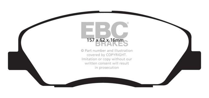 Nie pozwól, aby niższa cena zamiennika przesłoniła Ci ten doskonałej jakości produkt, który zatrzyma Twój samochód równie sprawnie, jak klocki oryginalne, a przy tym szybciej niż większość innych dostępnych na rynku. Wspaniałą zaletą klocków EBC jest ich zdolność do całkowitej eliminacji szarpania przy hamowaniu – po 450-600 km przebiegu praktycznie KOMPENSUJĄ szarpnięcia o umiarkowanym natężeniu. Nominalny współczynnik tarcia 0,46, przy minimalnym ścieraniu tarcz hamulcowych oraz pyleniu na poziomie części oryginalnych.