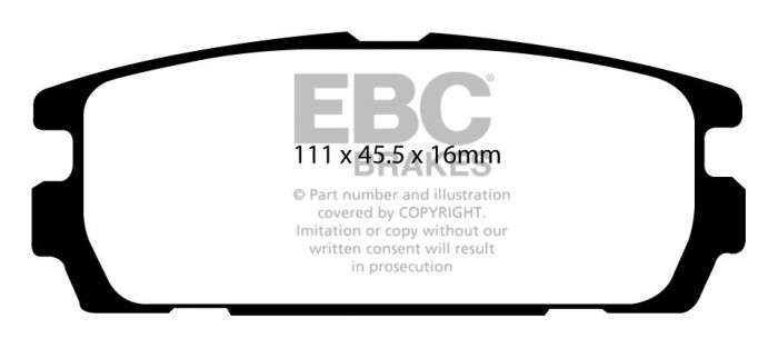 Nie pozwól, aby niższa cena zamiennika przesłoniła Ci ten doskonałej jakości produkt, który zatrzyma Twój samochód równie sprawnie, jak klocki oryginalne, a przy tym szybciej niż większość innych dostępnych na rynku. Wspaniałą zaletą klocków EBC jest ich zdolność do całkowitej eliminacji szarpania przy hamowaniu – po 450-600 km przebiegu praktycznie KOMPENSUJĄ szarpnięcia o umiarkowanym natężeniu. Nominalny współczynnik tarcia 0,46, przy minimalnym ścieraniu tarcz hamulcowych oraz pyleniu na poziomie części oryginalnych.