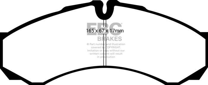 Nie pozwól, aby niższa cena zamiennika przesłoniła Ci ten doskonałej jakości produkt, który zatrzyma Twój samochód równie sprawnie, jak klocki oryginalne, a przy tym szybciej niż większość innych dostępnych na rynku. Wspaniałą zaletą klocków EBC jest ich zdolność do całkowitej eliminacji szarpania przy hamowaniu – po 450-600 km przebiegu praktycznie KOMPENSUJĄ szarpnięcia o umiarkowanym natężeniu. Nominalny współczynnik tarcia 0,46, przy minimalnym ścieraniu tarcz hamulcowych oraz pyleniu na poziomie części oryginalnych.