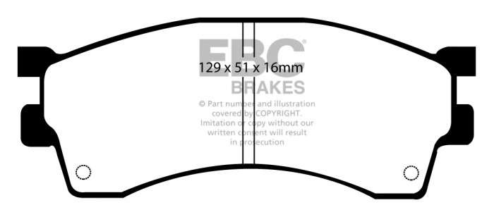 Nie pozwól, aby niższa cena zamiennika przesłoniła Ci ten doskonałej jakości produkt, który zatrzyma Twój samochód równie sprawnie, jak klocki oryginalne, a przy tym szybciej niż większość innych dostępnych na rynku. Wspaniałą zaletą klocków EBC jest ich zdolność do całkowitej eliminacji szarpania przy hamowaniu – po 450-600 km przebiegu praktycznie KOMPENSUJĄ szarpnięcia o umiarkowanym natężeniu. Nominalny współczynnik tarcia 0,46, przy minimalnym ścieraniu tarcz hamulcowych oraz pyleniu na poziomie części oryginalnych.