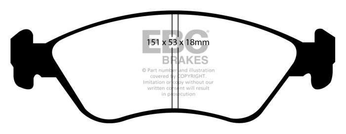 Czarne klocki EBC wykonane są z najwyższej jakości materiałów ciernych, spełniających wymogi norm bezpieczeństwa hamulców ECE R90 i jako takie stanowią doskonały zamiennik klocków montowanych fabrycznie – a przy tym za znacznie mniejsze pieniądze. Produkowane z podkładkami antywibracyjnymi, ukośnymi ścięciami, szczeliną dylatacyjną oraz unikalną powłoką BRAKE-IN, zapewniają niezwykle krótki czas docierania (w Europie tylko określone warianty mają podkładki).