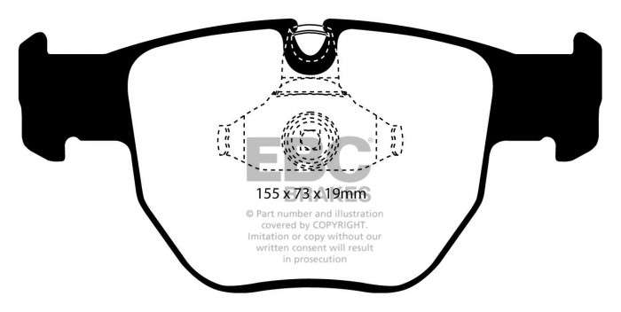 Czarne klocki EBC wykonane są z najwyższej jakości materiałów ciernych, spełniających wymogi norm bezpieczeństwa hamulców ECE R90 i jako takie stanowią doskonały zamiennik klocków montowanych fabrycznie – a przy tym za znacznie mniejsze pieniądze. Produkowane z podkładkami antywibracyjnymi, ukośnymi ścięciami, szczeliną dylatacyjną oraz unikalną powłoką BRAKE-IN, zapewniają niezwykle krótki czas docierania (w Europie tylko określone warianty mają podkładki).