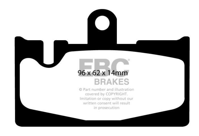 Nie pozwól, aby niższa cena zamiennika przesłoniła Ci ten doskonałej jakości produkt, który zatrzyma Twój samochód równie sprawnie, jak klocki oryginalne, a przy tym szybciej niż większość innych dostępnych na rynku. Wspaniałą zaletą klocków EBC jest ich zdolność do całkowitej eliminacji szarpania przy hamowaniu – po 450-600 km przebiegu praktycznie KOMPENSUJĄ szarpnięcia o umiarkowanym natężeniu. Nominalny współczynnik tarcia 0,46, przy minimalnym ścieraniu tarcz hamulcowych oraz pyleniu na poziomie części oryginalnych.
