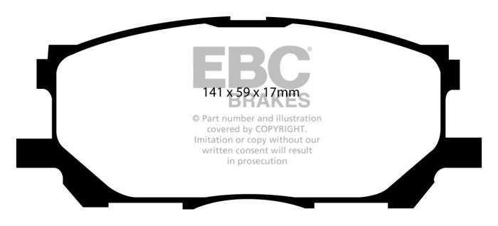 Przeznaczone do wymagających warunków jazdy miejskiej, charakteryzują się podwyższoną skutecznością hamowania aż do 600°C. Klocki hamulcowe EBC Greenstuff wyróżnia wysoka początkowa siła hamowania, dająca kierowcy poczucie pewności od pierwszego naciśnięcia pedału hamulca. Można by powiedzieć że nie ma czegoś takiego jak niepylące okładziny cierne. Istotą działania hamulców jest wytwarzanie pewnych ilości pyłu, co pozwala uniknąć wibracji tarczy hamulcowej (tzw. shimmingu). Pylenie klocków hamulcowych jest nasilone w okresie ich docierania, szczególnie w przypadku zużytych tarcz hamulcowych. W porównaniu z większością innych, klocki EBC Green Stuff generują mniejsze ilości pyłu i jest on łatwiej zmywalny. Nominalny współczynnik tarcia 0,55. Do cięższych i szybszych samochodów oraz tych wyposażonych w silniki o mocy przekraczającej 200 KM stanowczo zalecamy produkty z serii Redstuff, które wyróżniają się jeszcze mniejszym pyleniem.