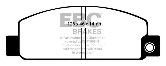 Nie pozwól, aby niższa cena zamiennika przesłoniła Ci ten doskonałej jakości produkt, który zatrzyma Twój samochód równie sprawnie, jak klocki oryginalne, a przy tym szybciej niż większość innych dostępnych na rynku. Wspaniałą zaletą klocków EBC jest ich zdolność do całkowitej eliminacji szarpania przy hamowaniu – po 450-600 km przebiegu praktycznie KOMPENSUJĄ szarpnięcia o umiarkowanym natężeniu. Nominalny współczynnik tarcia 0,46, przy minimalnym ścieraniu tarcz hamulcowych oraz pyleniu na poziomie części oryginalnych.