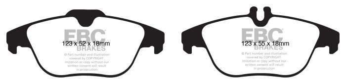 Przeznaczone do wymagających warunków jazdy miejskiej, charakteryzują się podwyższoną skutecznością hamowania aż do 600°C. Klocki hamulcowe EBC Greenstuff wyróżnia wysoka początkowa siła hamowania, dająca kierowcy poczucie pewności od pierwszego naciśnięcia pedału hamulca. Można by powiedzieć że nie ma czegoś takiego jak niepylące okładziny cierne. Istotą działania hamulców jest wytwarzanie pewnych ilości pyłu, co pozwala uniknąć wibracji tarczy hamulcowej (tzw. shimmingu). Pylenie klocków hamulcowych jest nasilone w okresie ich docierania, szczególnie w przypadku zużytych tarcz hamulcowych. W porównaniu z większością innych, klocki EBC Green Stuff generują mniejsze ilości pyłu i jest on łatwiej zmywalny. Nominalny współczynnik tarcia 0,55. Do cięższych i szybszych samochodów oraz tych wyposażonych w silniki o mocy przekraczającej 200 KM stanowczo zalecamy produkty z serii Redstuff, które wyróżniają się jeszcze mniejszym pyleniem.