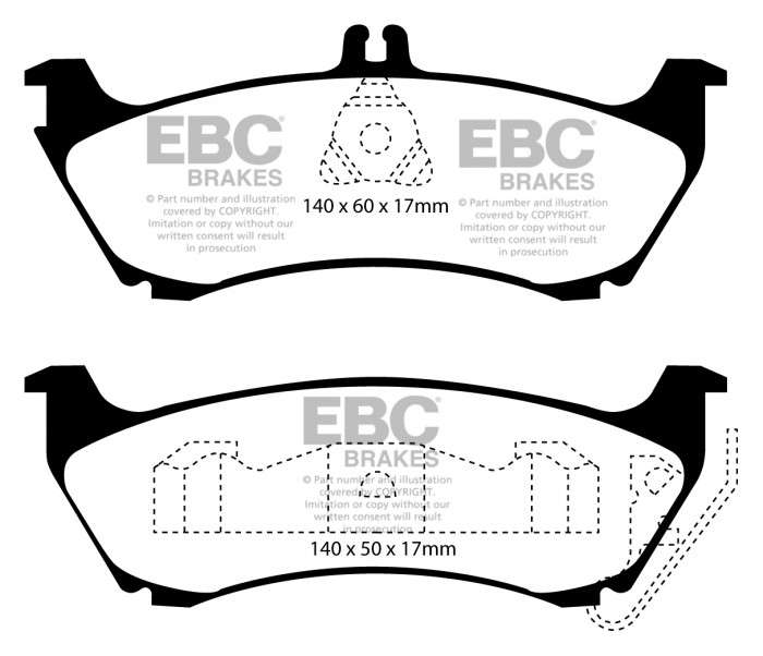 Okładziny wykonane są z kompozytu ciernego na bazie włókien z tworzywa Kevlar® wzmacnianego spiekami ceramicznymi. W porównaniu do wcześniejszej generacji klocków EBC Redstuff (z okładzinami ciernymi nieceramicznymi) ten materiał jest o lata świetlne do przodu. Jest trwalszy, lepiej hamuje i jest cichszy. Klocki te zapewniają imponującą skuteczność przy częstym intensywnym hamowaniu.