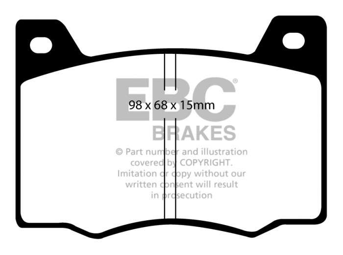 Nie pozwól, aby niższa cena zamiennika przesłoniła Ci ten doskonałej jakości produkt, który zatrzyma Twój samochód równie sprawnie, jak klocki oryginalne, a przy tym szybciej niż większość innych dostępnych na rynku. Wspaniałą zaletą klocków EBC jest ich zdolność do całkowitej eliminacji szarpania przy hamowaniu – po 450-600 km przebiegu praktycznie KOMPENSUJĄ szarpnięcia o umiarkowanym natężeniu. Nominalny współczynnik tarcia 0,46, przy minimalnym ścieraniu tarcz hamulcowych oraz pyleniu na poziomie części oryginalnych.