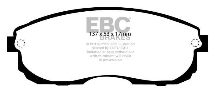 Przeznaczone do wymagających warunków jazdy miejskiej, charakteryzują się podwyższoną skutecznością hamowania aż do 600°C. Klocki hamulcowe EBC Greenstuff wyróżnia wysoka początkowa siła hamowania, dająca kierowcy poczucie pewności od pierwszego naciśnięcia pedału hamulca. Można by powiedzieć że nie ma czegoś takiego jak niepylące okładziny cierne. Istotą działania hamulców jest wytwarzanie pewnych ilości pyłu, co pozwala uniknąć wibracji tarczy hamulcowej (tzw. shimmingu). Pylenie klocków hamulcowych jest nasilone w okresie ich docierania, szczególnie w przypadku zużytych tarcz hamulcowych. W porównaniu z większością innych, klocki EBC Green Stuff generują mniejsze ilości pyłu i jest on łatwiej zmywalny. Nominalny współczynnik tarcia 0,55. Do cięższych i szybszych samochodów oraz tych wyposażonych w silniki o mocy przekraczającej 200 KM stanowczo zalecamy produkty z serii Redstuff, które wyróżniają się jeszcze mniejszym pyleniem.