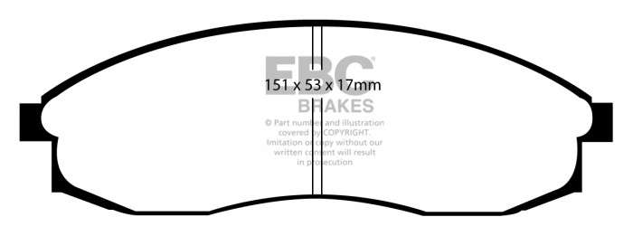 Przeznaczone do wymagających warunków jazdy miejskiej, charakteryzują się podwyższoną skutecznością hamowania aż do 600°C. Klocki hamulcowe EBC Greenstuff wyróżnia wysoka początkowa siła hamowania, dająca kierowcy poczucie pewności od pierwszego naciśnięcia pedału hamulca. Można by powiedzieć że nie ma czegoś takiego jak niepylące okładziny cierne. Istotą działania hamulców jest wytwarzanie pewnych ilości pyłu, co pozwala uniknąć wibracji tarczy hamulcowej (tzw. shimmingu). Pylenie klocków hamulcowych jest nasilone w okresie ich docierania, szczególnie w przypadku zużytych tarcz hamulcowych. W porównaniu z większością innych, klocki EBC Green Stuff generują mniejsze ilości pyłu i jest on łatwiej zmywalny. Nominalny współczynnik tarcia 0,55. Do cięższych i szybszych samochodów oraz tych wyposażonych w silniki o mocy przekraczającej 200 KM stanowczo zalecamy produkty z serii Redstuff, które wyróżniają się jeszcze mniejszym pyleniem.