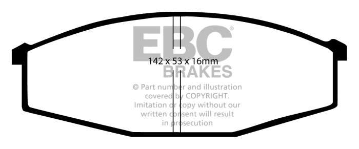 Nie pozwól, aby niższa cena zamiennika przesłoniła Ci ten doskonałej jakości produkt, który zatrzyma Twój samochód równie sprawnie, jak klocki oryginalne, a przy tym szybciej niż większość innych dostępnych na rynku. Wspaniałą zaletą klocków EBC jest ich zdolność do całkowitej eliminacji szarpania przy hamowaniu – po 450-600 km przebiegu praktycznie KOMPENSUJĄ szarpnięcia o umiarkowanym natężeniu. Nominalny współczynnik tarcia 0,46, przy minimalnym ścieraniu tarcz hamulcowych oraz pyleniu na poziomie części oryginalnych.