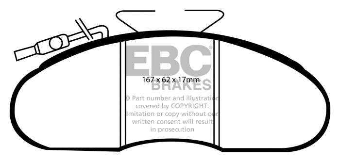 Nie pozwól, aby niższa cena zamiennika przesłoniła Ci ten doskonałej jakości produkt, który zatrzyma Twój samochód równie sprawnie, jak klocki oryginalne, a przy tym szybciej niż większość innych dostępnych na rynku. Wspaniałą zaletą klocków EBC jest ich zdolność do całkowitej eliminacji szarpania przy hamowaniu – po 450-600 km przebiegu praktycznie KOMPENSUJĄ szarpnięcia o umiarkowanym natężeniu. Nominalny współczynnik tarcia 0,46, przy minimalnym ścieraniu tarcz hamulcowych oraz pyleniu na poziomie części oryginalnych.