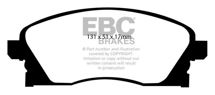 Przeznaczone do wymagających warunków jazdy miejskiej, charakteryzują się podwyższoną skutecznością hamowania aż do 600°C. Klocki hamulcowe EBC Greenstuff wyróżnia wysoka początkowa siła hamowania, dająca kierowcy poczucie pewności od pierwszego naciśnięcia pedału hamulca. Można by powiedzieć że nie ma czegoś takiego jak niepylące okładziny cierne. Istotą działania hamulców jest wytwarzanie pewnych ilości pyłu, co pozwala uniknąć wibracji tarczy hamulcowej (tzw. shimmingu). Pylenie klocków hamulcowych jest nasilone w okresie ich docierania, szczególnie w przypadku zużytych tarcz hamulcowych. W porównaniu z większością innych, klocki EBC Green Stuff generują mniejsze ilości pyłu i jest on łatwiej zmywalny. Nominalny współczynnik tarcia 0,55. Do cięższych i szybszych samochodów oraz tych wyposażonych w silniki o mocy przekraczającej 200 KM stanowczo zalecamy produkty z serii Redstuff, które wyróżniają się jeszcze mniejszym pyleniem.