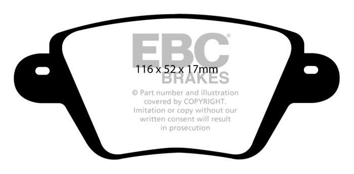 Nie pozwól, aby niższa cena zamiennika przesłoniła Ci ten doskonałej jakości produkt, który zatrzyma Twój samochód równie sprawnie, jak klocki oryginalne, a przy tym szybciej niż większość innych dostępnych na rynku. Wspaniałą zaletą klocków EBC jest ich zdolność do całkowitej eliminacji szarpania przy hamowaniu – po 450-600 km przebiegu praktycznie KOMPENSUJĄ szarpnięcia o umiarkowanym natężeniu. Nominalny współczynnik tarcia 0,46, przy minimalnym ścieraniu tarcz hamulcowych oraz pyleniu na poziomie części oryginalnych.