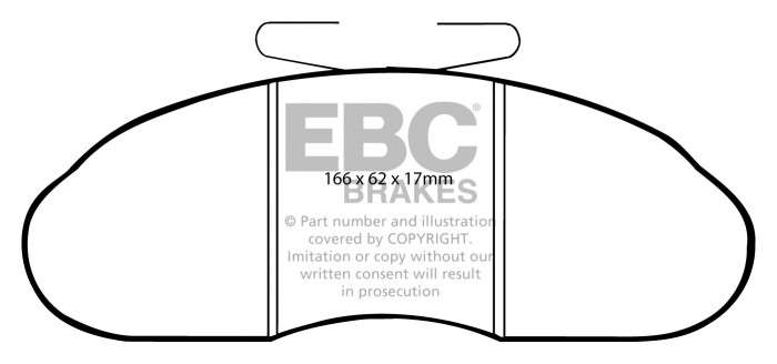 Nie pozwól, aby niższa cena zamiennika przesłoniła Ci ten doskonałej jakości produkt, który zatrzyma Twój samochód równie sprawnie, jak klocki oryginalne, a przy tym szybciej niż większość innych dostępnych na rynku. Wspaniałą zaletą klocków EBC jest ich zdolność do całkowitej eliminacji szarpania przy hamowaniu – po 450-600 km przebiegu praktycznie KOMPENSUJĄ szarpnięcia o umiarkowanym natężeniu. Nominalny współczynnik tarcia 0,46, przy minimalnym ścieraniu tarcz hamulcowych oraz pyleniu na poziomie części oryginalnych.