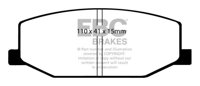 Czarne klocki EBC wykonane są z najwyższej jakości materiałów ciernych, spełniających wymogi norm bezpieczeństwa hamulców ECE R90 i jako takie stanowią doskonały zamiennik klocków montowanych fabrycznie – a przy tym za znacznie mniejsze pieniądze. Produkowane z podkładkami antywibracyjnymi, ukośnymi ścięciami, szczeliną dylatacyjną oraz unikalną powłoką BRAKE-IN, zapewniają niezwykle krótki czas docierania (w Europie tylko określone warianty mają podkładki).