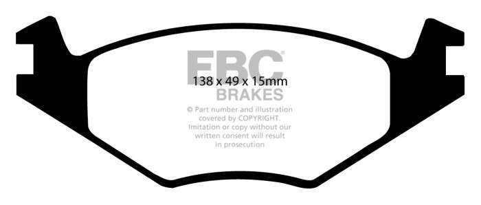 Nie pozwól, aby niższa cena zamiennika przesłoniła Ci ten doskonałej jakości produkt, który zatrzyma Twój samochód równie sprawnie, jak klocki oryginalne, a przy tym szybciej niż większość innych dostępnych na rynku. Wspaniałą zaletą klocków EBC jest ich zdolność do całkowitej eliminacji szarpania przy hamowaniu – po 450-600 km przebiegu praktycznie KOMPENSUJĄ szarpnięcia o umiarkowanym natężeniu. Nominalny współczynnik tarcia 0,46, przy minimalnym ścieraniu tarcz hamulcowych oraz pyleniu na poziomie części oryginalnych.