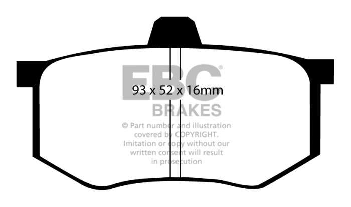 Nie pozwól, aby niższa cena zamiennika przesłoniła Ci ten doskonałej jakości produkt, który zatrzyma Twój samochód równie sprawnie, jak klocki oryginalne, a przy tym szybciej niż większość innych dostępnych na rynku. Wspaniałą zaletą klocków EBC jest ich zdolność do całkowitej eliminacji szarpania przy hamowaniu – po 450-600 km przebiegu praktycznie KOMPENSUJĄ szarpnięcia o umiarkowanym natężeniu. Nominalny współczynnik tarcia 0,46, przy minimalnym ścieraniu tarcz hamulcowych oraz pyleniu na poziomie części oryginalnych.