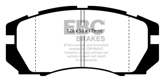 EBC Yellowstuff jest materiałem ciernym na bazie włókien aramidowych zapewniającym wysoką skuteczność hamulców już przy niskiej temperaturze i jest pierwszym materiałem do ZASTOSOWAŃ ULICZNYCH I TOROWYCH. Klocki te nie wymagają rozgrzania, ale wysoka temperatura ostrej jazdy tylko wzmaga ich skuteczność. Nie są to klocki mało pylące – poszukując takich do zastosowań ulicznych należy rozważyć EBC Redstuff. Klocki EBC Yellowstuff są obecnie produkowane w dwóch wersjach materiałowych – DM1846 i DM1793. Obie były z powodzeniem stosowane w wyścigach. Choć w porównaniu ze standardowymi klockami oryginalnymi DM1793 bez wątpienia dają lepszą reakcję, to JEDNAK są nieco twardsze, nieco trwalsze i lepiej przystosowane do sportowej jazdy na torze.