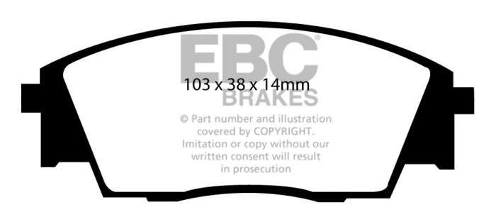 Nie pozwól, aby niższa cena zamiennika przesłoniła Ci ten doskonałej jakości produkt, który zatrzyma Twój samochód równie sprawnie, jak klocki oryginalne, a przy tym szybciej niż większość innych dostępnych na rynku. Wspaniałą zaletą klocków EBC jest ich zdolność do całkowitej eliminacji szarpania przy hamowaniu – po 450-600 km przebiegu praktycznie KOMPENSUJĄ szarpnięcia o umiarkowanym natężeniu. Nominalny współczynnik tarcia 0,46, przy minimalnym ścieraniu tarcz hamulcowych oraz pyleniu na poziomie części oryginalnych.
