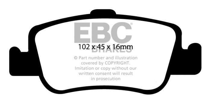 Nie pozwól, aby niższa cena zamiennika przesłoniła Ci ten doskonałej jakości produkt, który zatrzyma Twój samochód równie sprawnie, jak klocki oryginalne, a przy tym szybciej niż większość innych dostępnych na rynku. Wspaniałą zaletą klocków EBC jest ich zdolność do całkowitej eliminacji szarpania przy hamowaniu – po 450-600 km przebiegu praktycznie KOMPENSUJĄ szarpnięcia o umiarkowanym natężeniu. Nominalny współczynnik tarcia 0,46, przy minimalnym ścieraniu tarcz hamulcowych oraz pyleniu na poziomie części oryginalnych.