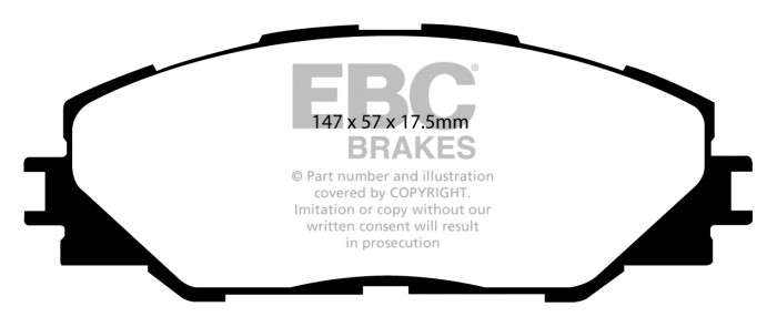 Nie pozwól, aby niższa cena zamiennika przesłoniła Ci ten doskonałej jakości produkt, który zatrzyma Twój samochód równie sprawnie, jak klocki oryginalne, a przy tym szybciej niż większość innych dostępnych na rynku. Wspaniałą zaletą klocków EBC jest ich zdolność do całkowitej eliminacji szarpania przy hamowaniu – po 450-600 km przebiegu praktycznie KOMPENSUJĄ szarpnięcia o umiarkowanym natężeniu. Nominalny współczynnik tarcia 0,46, przy minimalnym ścieraniu tarcz hamulcowych oraz pyleniu na poziomie części oryginalnych.