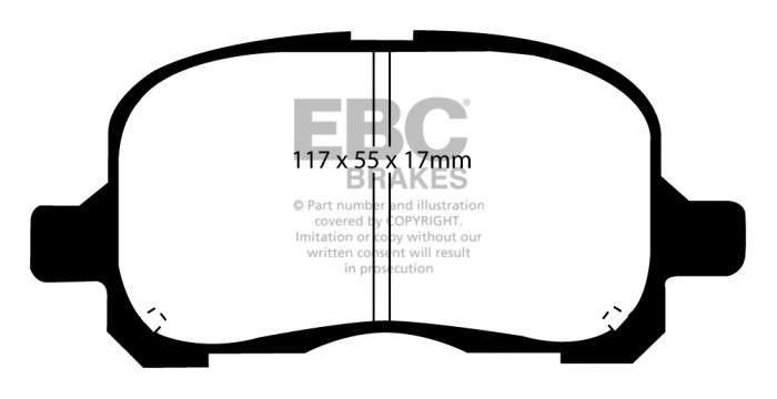 Przeznaczone do wymagających warunków jazdy miejskiej, charakteryzują się podwyższoną skutecznością hamowania aż do 600°C. Klocki hamulcowe EBC Greenstuff wyróżnia wysoka początkowa siła hamowania, dająca kierowcy poczucie pewności od pierwszego naciśnięcia pedału hamulca. Można by powiedzieć że nie ma czegoś takiego jak niepylące okładziny cierne. Istotą działania hamulców jest wytwarzanie pewnych ilości pyłu, co pozwala uniknąć wibracji tarczy hamulcowej (tzw. shimmingu). Pylenie klocków hamulcowych jest nasilone w okresie ich docierania, szczególnie w przypadku zużytych tarcz hamulcowych. W porównaniu z większością innych, klocki EBC Green Stuff generują mniejsze ilości pyłu i jest on łatwiej zmywalny. Nominalny współczynnik tarcia 0,55. Do cięższych i szybszych samochodów oraz tych wyposażonych w silniki o mocy przekraczającej 200 KM stanowczo zalecamy produkty z serii Redstuff, które wyróżniają się jeszcze mniejszym pyleniem.