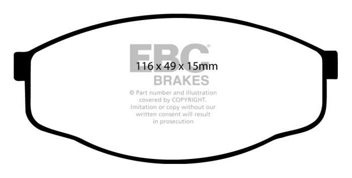 Nie pozwól, aby niższa cena zamiennika przesłoniła Ci ten doskonałej jakości produkt, który zatrzyma Twój samochód równie sprawnie, jak klocki oryginalne, a przy tym szybciej niż większość innych dostępnych na rynku. Wspaniałą zaletą klocków EBC jest ich zdolność do całkowitej eliminacji szarpania przy hamowaniu – po 450-600 km przebiegu praktycznie KOMPENSUJĄ szarpnięcia o umiarkowanym natężeniu. Nominalny współczynnik tarcia 0,46, przy minimalnym ścieraniu tarcz hamulcowych oraz pyleniu na poziomie części oryginalnych.