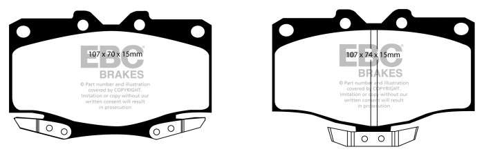 Czarne klocki EBC wykonane są z najwyższej jakości materiałów ciernych, spełniających wymogi norm bezpieczeństwa hamulców ECE R90 i jako takie stanowią doskonały zamiennik klocków montowanych fabrycznie – a przy tym za znacznie mniejsze pieniądze. Produkowane z podkładkami antywibracyjnymi, ukośnymi ścięciami, szczeliną dylatacyjną oraz unikalną powłoką BRAKE-IN, zapewniają niezwykle krótki czas docierania (w Europie tylko określone warianty mają podkładki).
