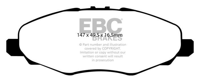 Nie pozwól, aby niższa cena zamiennika przesłoniła Ci ten doskonałej jakości produkt, który zatrzyma Twój samochód równie sprawnie, jak klocki oryginalne, a przy tym szybciej niż większość innych dostępnych na rynku. Wspaniałą zaletą klocków EBC jest ich zdolność do całkowitej eliminacji szarpania przy hamowaniu – po 450-600 km przebiegu praktycznie KOMPENSUJĄ szarpnięcia o umiarkowanym natężeniu. Nominalny współczynnik tarcia 0,46, przy minimalnym ścieraniu tarcz hamulcowych oraz pyleniu na poziomie części oryginalnych.