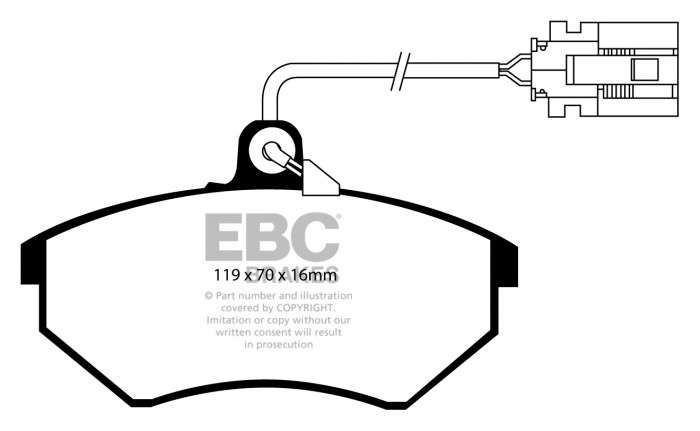 Czarne klocki EBC wykonane są z najwyższej jakości materiałów ciernych, spełniających wymogi norm bezpieczeństwa hamulców ECE R90 i jako takie stanowią doskonały zamiennik klocków montowanych fabrycznie – a przy tym za znacznie mniejsze pieniądze. Produkowane z podkładkami antywibracyjnymi, ukośnymi ścięciami, szczeliną dylatacyjną oraz unikalną powłoką BRAKE-IN, zapewniają niezwykle krótki czas docierania (w Europie tylko określone warianty mają podkładki).