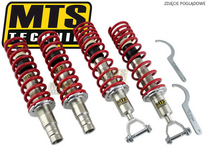 Przednia i tylna oś z regulacją wysokości (nagwintowane kolumny amortyzatorów przednich, na osi tylnej regulacja wysokości na sprężynach + amortyzatory).