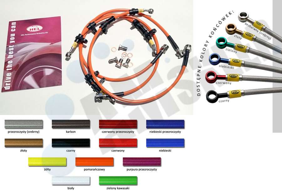 W przeciwieństwie do gumowych przewodów hamulcowych, stosowanych w samochodach, przewody hamulcowe HEL nie są dziełem kompromisu pomiędzy ceną a jakością. Od teflonowego rdzenia przewodu, poprzez stalowy oplot i osłaniającą go koszulkę, po zaciśnięte na przewodzie końcówki ze stali nierdzewnej - wszystko wykonane jest precyzyjnie i z najlepszej jakości materiałów. Nie znajdziesz tu końcówek z miękkiej stali, które z czasem mogą rdzewieć, ani z aluminium wrażliwego na zjawisko korozji elektrolitycznej. Tylko najlepsze materiały mogą zapewnić wytrzymałość i wydajność, jakiej oczekujesz od każdego elementu układu hamulcowego Twojego samochodu. Dodatkowo każdy nasz klient ma możliwość wyboru koloru przewodu bez żadnych dopłat.