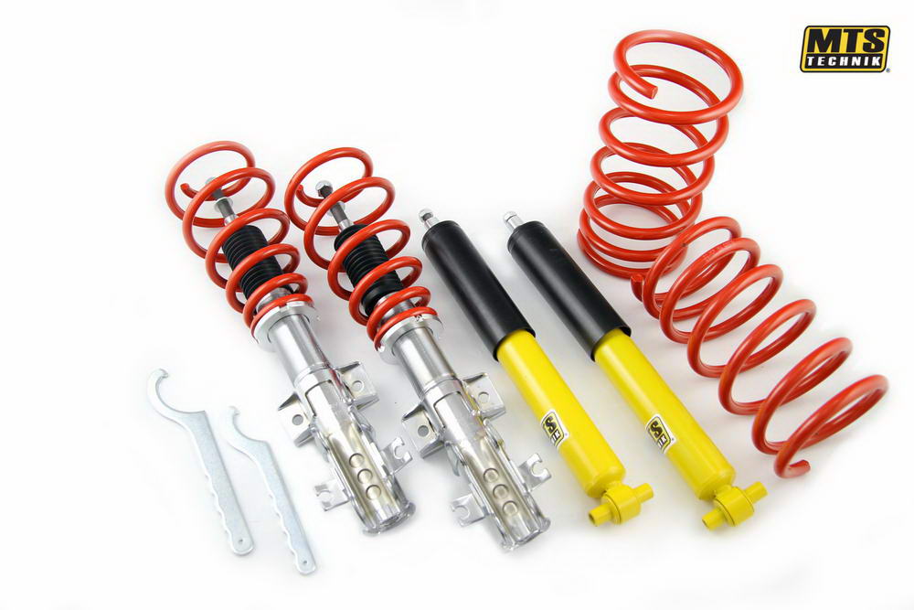 Nagwintowane kolumny amortyzatorów na przednią oś, na tylnej osi stałe obniżenie (w zestawie sprężyny obniżające i amortyzatory).