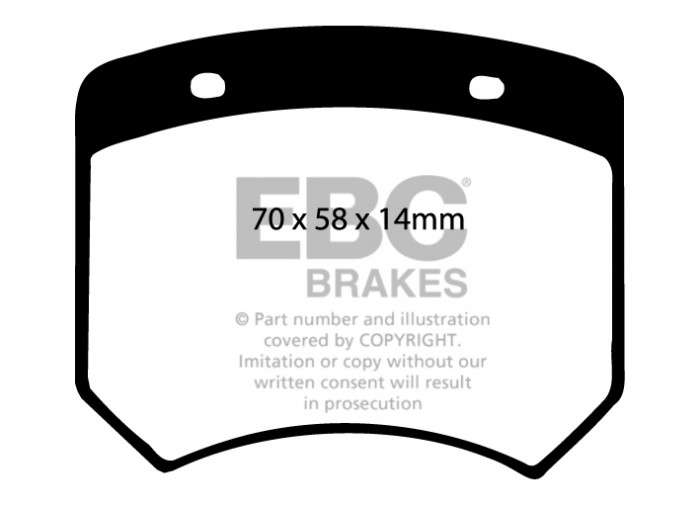 Nie pozwól, aby niższa cena zamiennika przesłoniła Ci ten doskonałej jakości produkt, który zatrzyma Twój samochód równie sprawnie, jak klocki oryginalne, a przy tym szybciej niż większość innych dostępnych na rynku. Wspaniałą zaletą klocków EBC jest ich zdolność do całkowitej eliminacji szarpania przy hamowaniu – po 450-600 km przebiegu praktycznie KOMPENSUJĄ szarpnięcia o umiarkowanym natężeniu. Nominalny współczynnik tarcia 0,46, przy minimalnym ścieraniu tarcz hamulcowych oraz pyleniu na poziomie części oryginalnych.