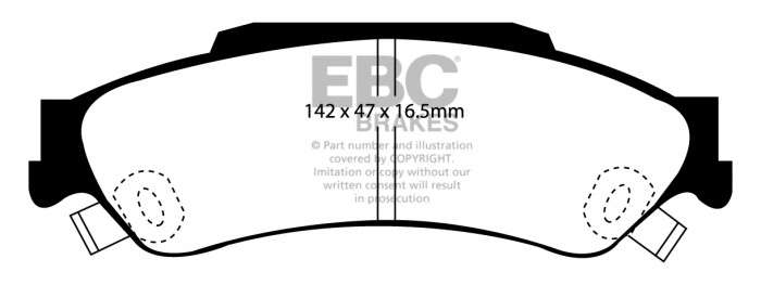Nie pozwól, aby niższa cena zamiennika przesłoniła Ci ten doskonałej jakości produkt, który zatrzyma Twój samochód równie sprawnie, jak klocki oryginalne, a przy tym szybciej niż większość innych dostępnych na rynku. Wspaniałą zaletą klocków EBC jest ich zdolność do całkowitej eliminacji szarpania przy hamowaniu – po 450-600 km przebiegu praktycznie KOMPENSUJĄ szarpnięcia o umiarkowanym natężeniu. Nominalny współczynnik tarcia 0,46, przy minimalnym ścieraniu tarcz hamulcowych oraz pyleniu na poziomie części oryginalnych.