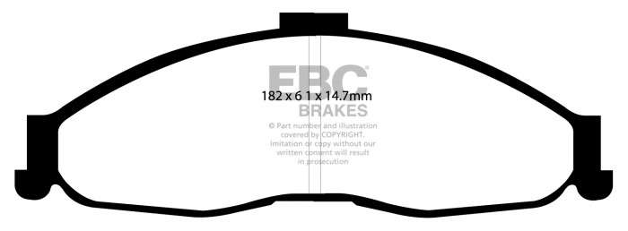 Nie pozwól, aby niższa cena zamiennika przesłoniła Ci ten doskonałej jakości produkt, który zatrzyma Twój samochód równie sprawnie, jak klocki oryginalne, a przy tym szybciej niż większość innych dostępnych na rynku. Wspaniałą zaletą klocków EBC jest ich zdolność do całkowitej eliminacji szarpania przy hamowaniu – po 450-600 km przebiegu praktycznie KOMPENSUJĄ szarpnięcia o umiarkowanym natężeniu. Nominalny współczynnik tarcia 0,46, przy minimalnym ścieraniu tarcz hamulcowych oraz pyleniu na poziomie części oryginalnych.