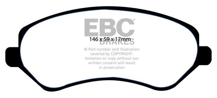Nie pozwól, aby niższa cena zamiennika przesłoniła Ci ten doskonałej jakości produkt, który zatrzyma Twój samochód równie sprawnie, jak klocki oryginalne, a przy tym szybciej niż większość innych dostępnych na rynku. Wspaniałą zaletą klocków EBC jest ich zdolność do całkowitej eliminacji szarpania przy hamowaniu – po 450-600 km przebiegu praktycznie KOMPENSUJĄ szarpnięcia o umiarkowanym natężeniu. Nominalny współczynnik tarcia 0,46, przy minimalnym ścieraniu tarcz hamulcowych oraz pyleniu na poziomie części oryginalnych.
