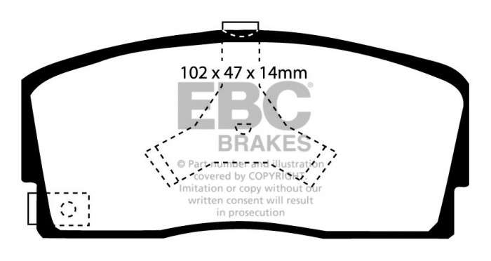 Przeznaczone do wymagających warunków jazdy miejskiej, charakteryzują się podwyższoną skutecznością hamowania aż do 600°C. Klocki hamulcowe EBC Greenstuff wyróżnia wysoka początkowa siła hamowania, dająca kierowcy poczucie pewności od pierwszego naciśnięcia pedału hamulca. Można by powiedzieć że nie ma czegoś takiego jak niepylące okładziny cierne. Istotą działania hamulców jest wytwarzanie pewnych ilości pyłu, co pozwala uniknąć wibracji tarczy hamulcowej (tzw. shimmingu). Pylenie klocków hamulcowych jest nasilone w okresie ich docierania, szczególnie w przypadku zużytych tarcz hamulcowych. W porównaniu z większością innych, klocki EBC Green Stuff generują mniejsze ilości pyłu i jest on łatwiej zmywalny. Nominalny współczynnik tarcia 0,55. Do cięższych i szybszych samochodów oraz tych wyposażonych w silniki o mocy przekraczającej 200 KM stanowczo zalecamy produkty z serii Redstuff, które wyróżniają się jeszcze mniejszym pyleniem.