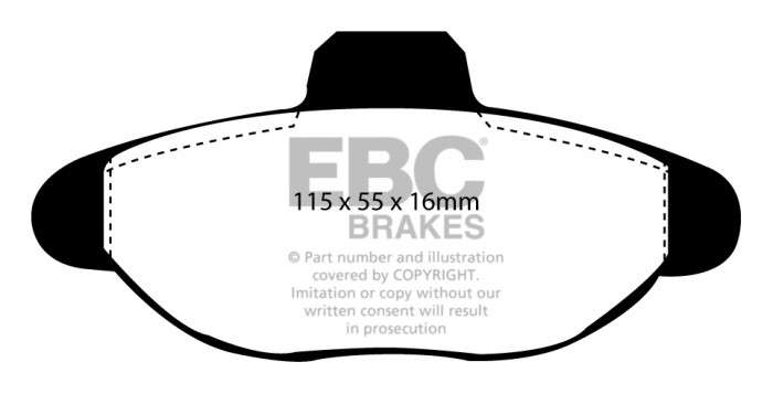 Czarne klocki EBC wykonane są z najwyższej jakości materiałów ciernych, spełniających wymogi norm bezpieczeństwa hamulców ECE R90 i jako takie stanowią doskonały zamiennik klocków montowanych fabrycznie – a przy tym za znacznie mniejsze pieniądze. Produkowane z podkładkami antywibracyjnymi, ukośnymi ścięciami, szczeliną dylatacyjną oraz unikalną powłoką BRAKE-IN, zapewniają niezwykle krótki czas docierania (w Europie tylko określone warianty mają podkładki).