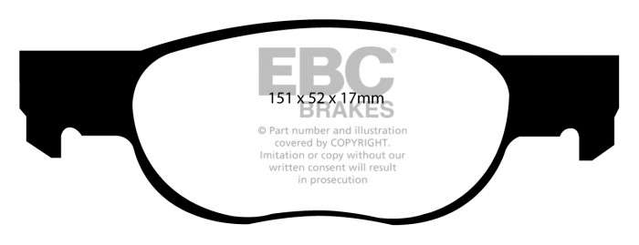 Przeznaczone do wymagających warunków jazdy miejskiej, charakteryzują się podwyższoną skutecznością hamowania aż do 600°C. Klocki hamulcowe EBC Greenstuff wyróżnia wysoka początkowa siła hamowania, dająca kierowcy poczucie pewności od pierwszego naciśnięcia pedału hamulca. Można by powiedzieć że nie ma czegoś takiego jak niepylące okładziny cierne. Istotą działania hamulców jest wytwarzanie pewnych ilości pyłu, co pozwala uniknąć wibracji tarczy hamulcowej (tzw. shimmingu). Pylenie klocków hamulcowych jest nasilone w okresie ich docierania, szczególnie w przypadku zużytych tarcz hamulcowych. W porównaniu z większością innych, klocki EBC Green Stuff generują mniejsze ilości pyłu i jest on łatwiej zmywalny. Nominalny współczynnik tarcia 0,55. Do cięższych i szybszych samochodów oraz tych wyposażonych w silniki o mocy przekraczającej 200 KM stanowczo zalecamy produkty z serii Redstuff, które wyróżniają się jeszcze mniejszym pyleniem.