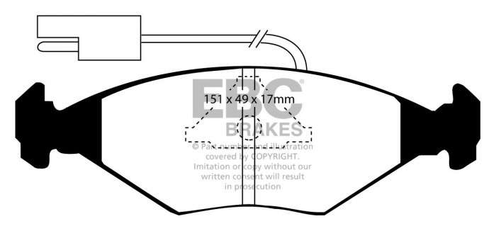 Czarne klocki EBC wykonane są z najwyższej jakości materiałów ciernych, spełniających wymogi norm bezpieczeństwa hamulców ECE R90 i jako takie stanowią doskonały zamiennik klocków montowanych fabrycznie – a przy tym za znacznie mniejsze pieniądze. Produkowane z podkładkami antywibracyjnymi, ukośnymi ścięciami, szczeliną dylatacyjną oraz unikalną powłoką BRAKE-IN, zapewniają niezwykle krótki czas docierania (w Europie tylko określone warianty mają podkładki).